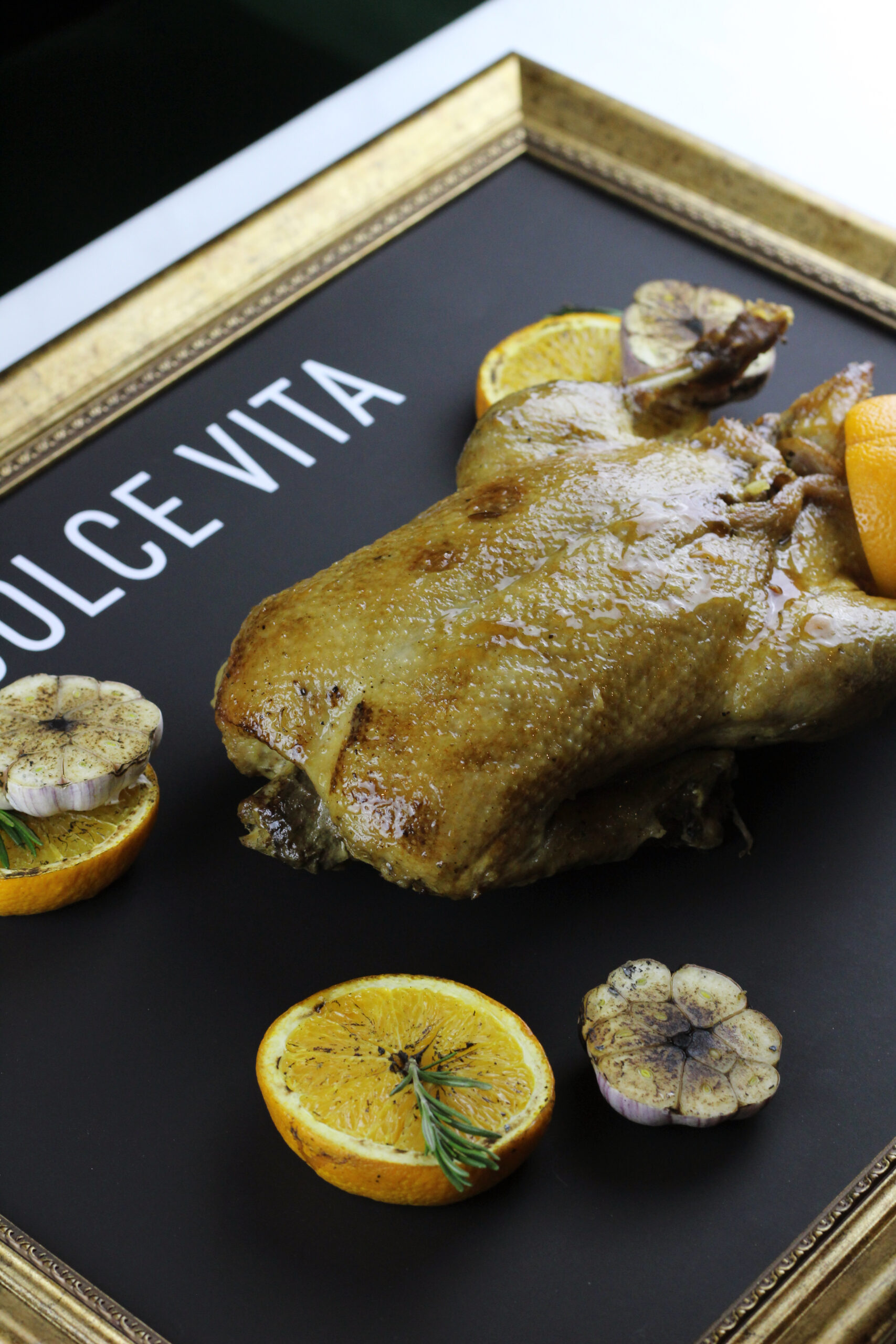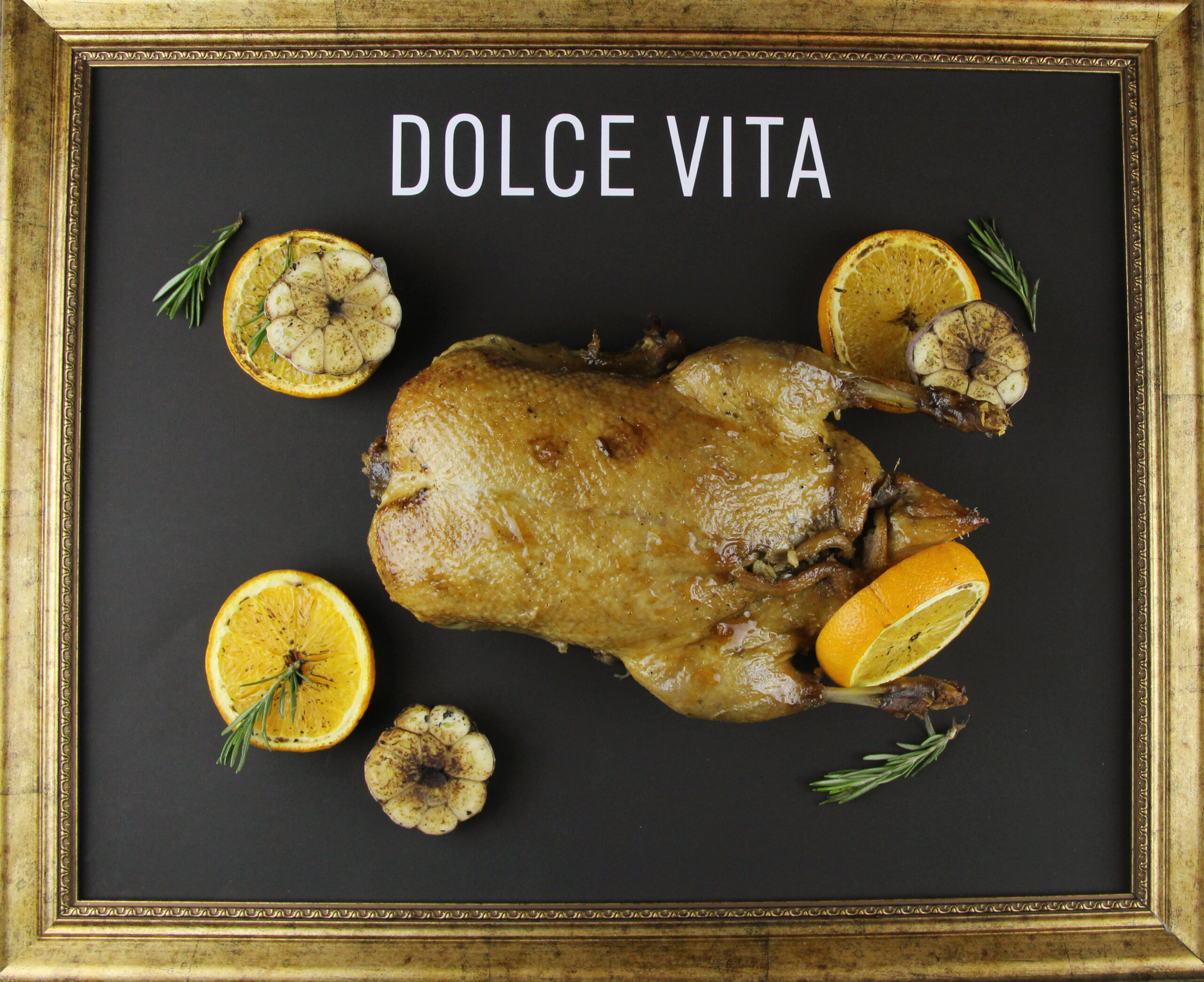 Запеченная утка, фаршированная диким рисом, курагой и изюмом. Средний вес 2,5 — 3 кг. Цена указана за 1 кг.